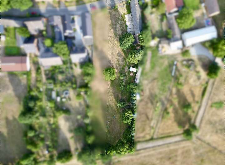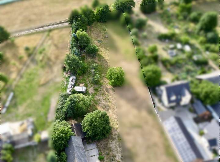 Hierbei handelt es sich um ein großzügiges, längs geschnittenes Grundstück im Ortsteil Cottbus-Willmersdorf. Die amtliche Fläche beträgt ca. 2.655 m². Straßenseitig steht ein langgestrecktes Bestandsgebäude in Ziegelbauweise – eine gut erhaltene Scheune, zuletzt als Schafstall genutzt – mit vorgelagerter, betonierter Hoffläche. Direkt angrenzend befindet sich ein kleiner Sommer-Bungalow (saisonal genutzt). Weitere Aufbauten sind nicht vorhanden.