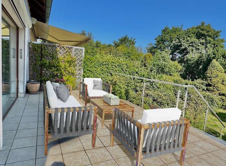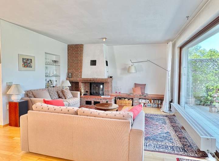 Laufend modernisiert Wohnzimmer mit Kamin und großer Fensterfront Moderner Parkettboden im EG Moderne Einbauküche Zusätzliches Badezimmer im KG Beheizbarer Hobbyraum im KG Bereits Nutzung erneuerbarer Energien Geräumige Garage mit modernem Rolltor Idyllischer Garten Große Terrasse mit Blick in den Garten Zweiter Freisitz im hinteren Gartenbereich