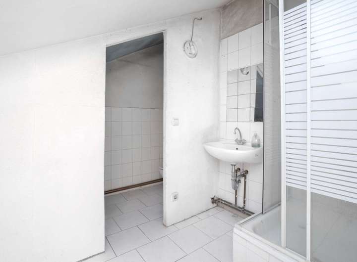 + halb fertiggestelltes Badezimmer mit Dusche im Dachgeschoss