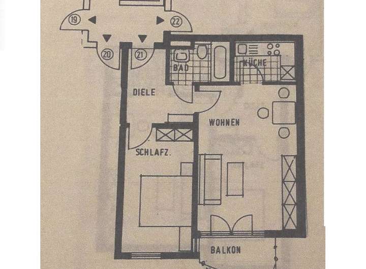Die kleine gut geschnittene 2 Zi-Wg. ist mit Laminatboden ausgestattet. Das Wohnzimmer mit fast 23qm ausgerichtet zur Sonnenseite ist sehr hell und lichtdurchflutet. Die Küche ist etwas kleiner aber funktionell. Das Schlafzimmer verfügt über genug Platz. Im Flur haben Sie ebenfalls genug Stellfläche. Das Badezimmer ist mit einer Badewanne ausgestattet.
