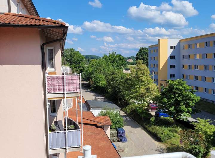 Schöner überdachter Süd/Westbalkon mit Weitblick.