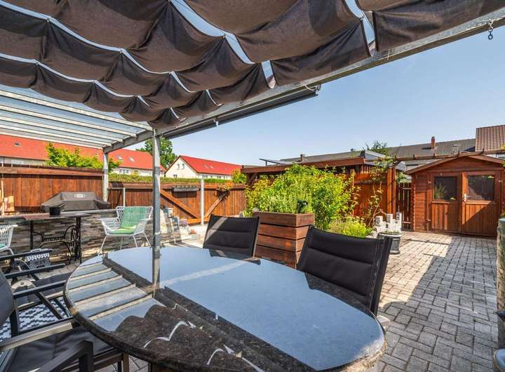 Das 243 m² große Grundstück überzeugt mit einem liebevoll angelegten Garten, der viel Platz zum Entspannen und Genießen bietet. Die Terrasse ist ein echtes Highlight – perfekt, um laue Sommerabende zu verlängern oder auch im Frühjahr und Herbst im Grünen zu sitzen. Für Ihre Fahrzeuge steht ein praktisches Doppelcarport zur Verfügung.