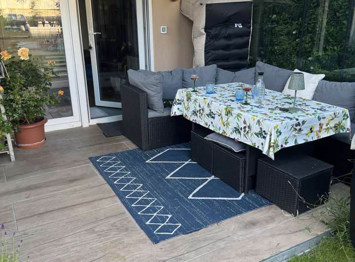 Die Böden sind mit pflegeleichtem Laminat und Fliesen ausgestattet – eine gelungene Kombination aus Funktionalität und modernem Wohnstil.
