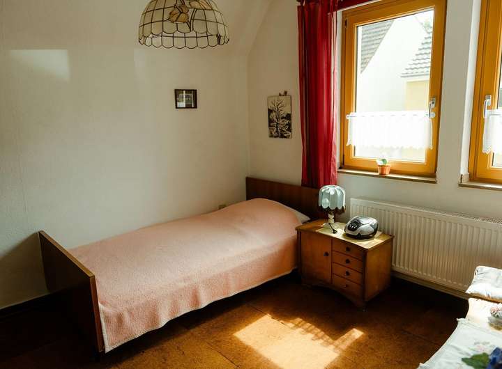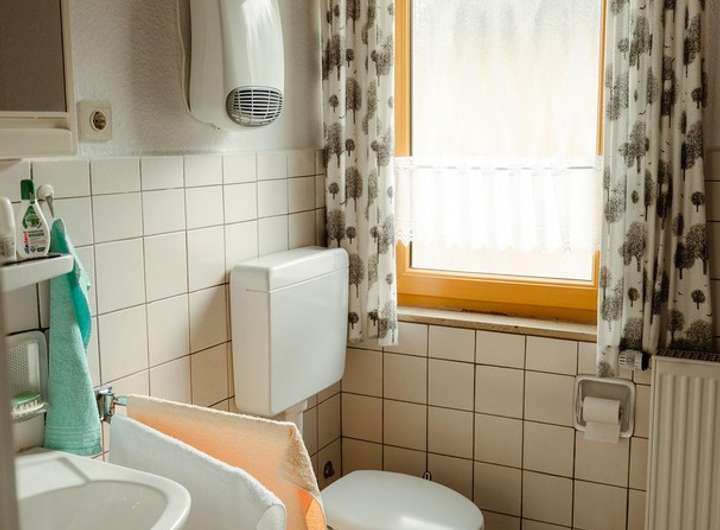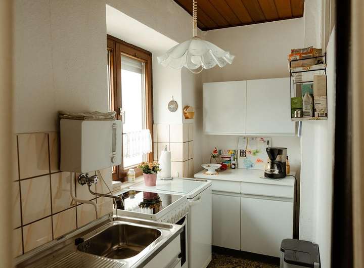 Einfachste Ausstattung aber mit Doppelverglasung, neuen Heizkörpern und neuer Gastherme. Zur Wohnfläche kommen Keller- und Dachboden hinzu.