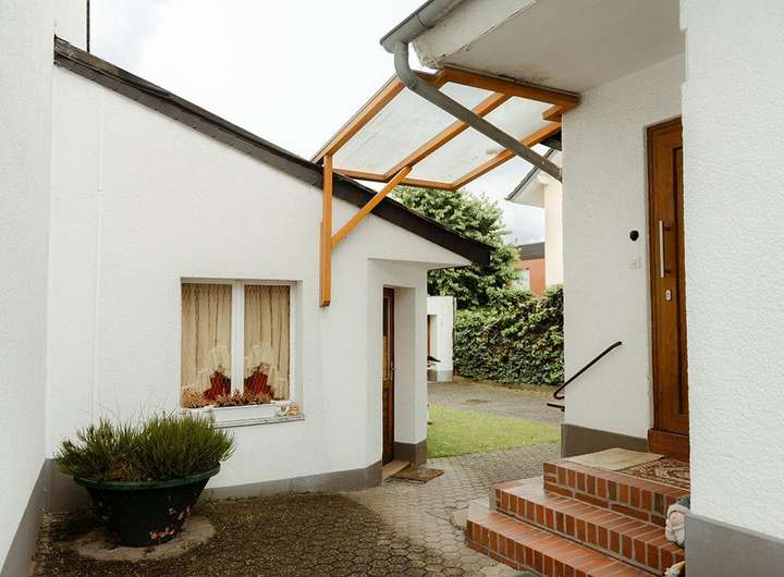 Das Objekt ist für einen selbstständigen Handwerker oder Unternehmer geeignet, um Wohnen und Lager zu verbinden. Der von außen teils nicht einsehbare Innenhof verfügt aktuell über eine kleine Rasenfläche sowie eine mit Pflastersteinen befestigte Zufahrt.
