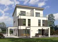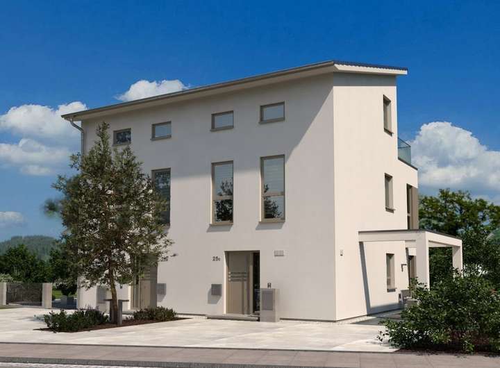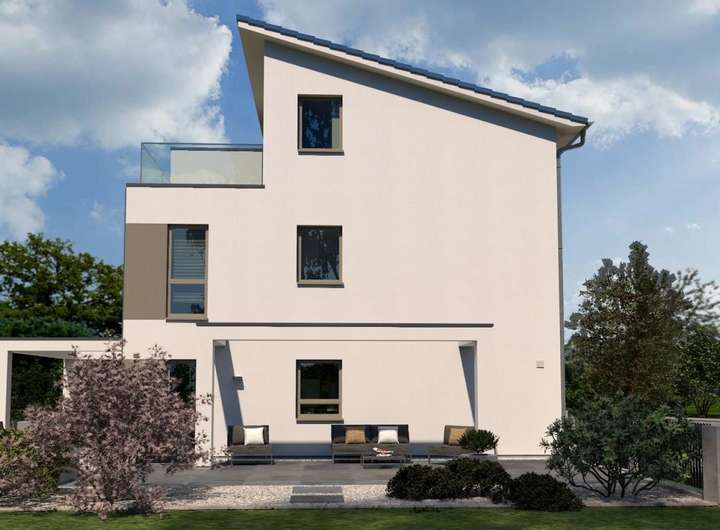 Das 2 ½-geschossige Raumwunder besticht durch großflächige Raumaufteilung auf drei Ebenen. Wohnen/Kochen, Kinder/ Bad, Eltern/Büro - für jeden Bereich gibt es eine eigene Etage. Die Grundrisse sind gespiegelt und identisch. Für Individualität und Persönlichkeit sorgen die Bewohner. Alle Räume bestechen durch Größe und Helligkeit. Unter dem nur leicht gewinkelten Pultdach präsentieren sich lässige 1,70 m Kniestockhöhe im Dachgeschoss. Absolutes Highlight hier: die raumgroßen Dachterrassen für ungestörte Sonnenstunden unter freiem Himmel.
