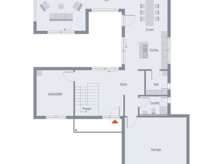 Dieser Architektenentwurf ist ein Planungsvorschlag und dient der Inspiration und Orientierung. Grundrisse, Architektur-Extras, Ausbau- und Effizienzhaus-Stufen werden individuell auf Ihre Wünsche und Bedürfnisse angepasst.