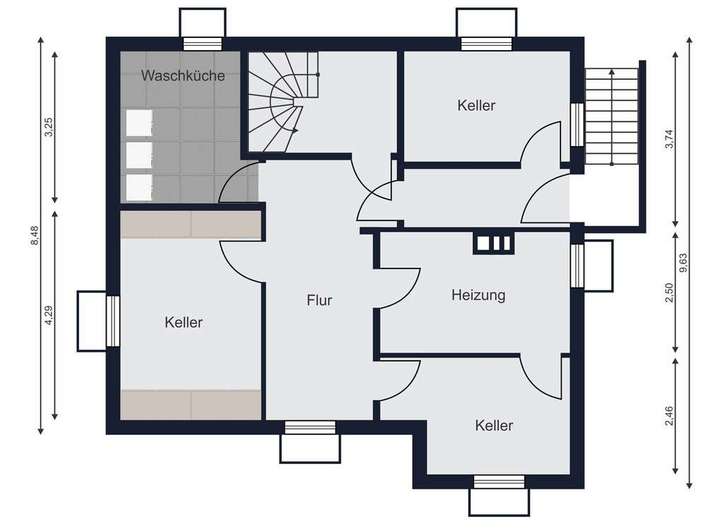 Das Kellergeschoss ist voll unterkellert und bietet viel Stauraum. Zusätzlich befindet sich hier ein direkter Zugang zum Garten, der das Grundstück noch attraktiver macht. Diverse Kellerabteile stehen für Ihre persönlichen Gegenstände zur Verfügung.