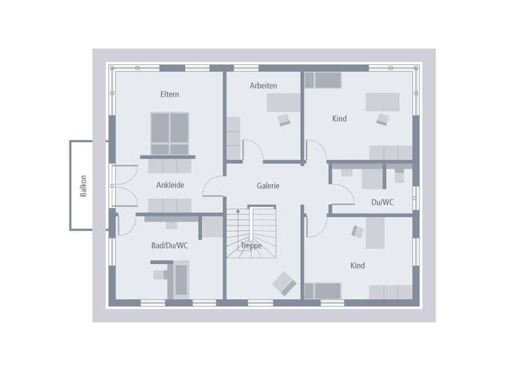 Dieser Architektenentwurf ist ein Planungsvorschlag und dient der Inspiration und Orientierung. Grundrisse, Architektur-Extras, Ausbau- und Effizienzhaus-Stufen werden individuell auf Ihre Wünsche und Bedürfnisse angepasst.