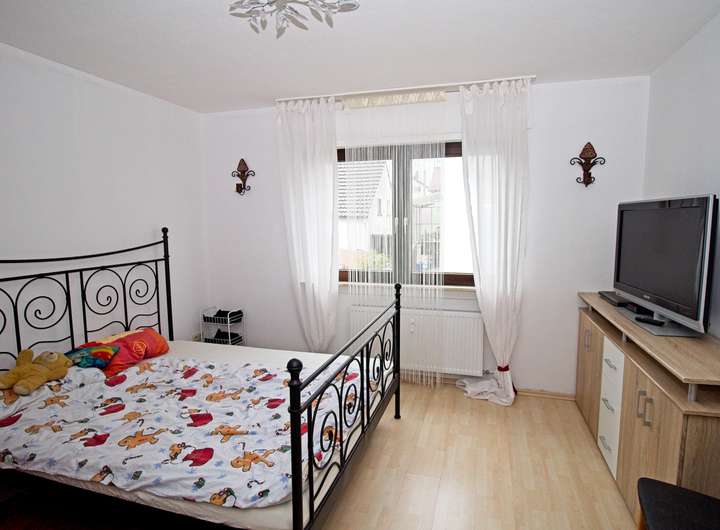 • Maisonette-Wohnung (1. Obergeschoss und Dachgeschoss): Die großzügige 5,5-Zimmer-Maisonettewohnung erstreckt sich über ca. 125 m². Im unteren Bereich der Wohnung befinden sich das große Wohnzimmer-Esszimmer, ein Schlafzimmer, die Küche, ein WC, ein Badezimmer und ein Balkon. Im oberen Bereich sind drei weitere Zimmer, die als Schlafzimmer oder Büro genutzt werden können, ebenso ein Badezimmer.