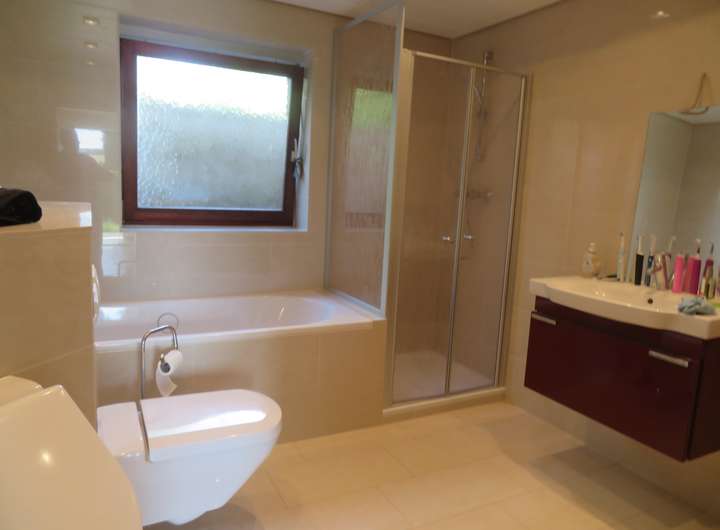 Fenster mit Isolierglas und Rollläden, 2 Bäder, 1 Gäste WC. Öl-Zentralheizung. Garage und Stellplatz.