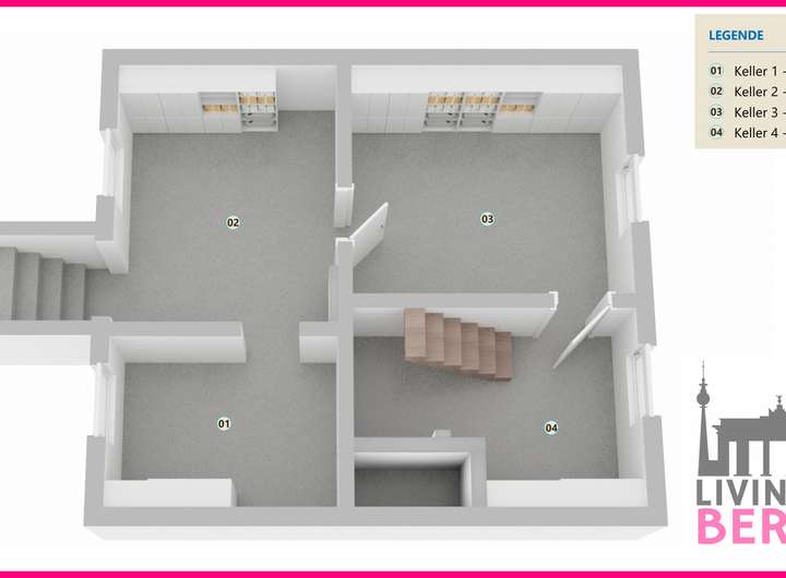 Im Kellergeschoss finden Sie insgesamt vier Räume, die ausreichend Stellfläche für die typischen Dinge, die sich in einem Haus so ansammeln, bieten. Zusätzlich sind die Heizungsanlage und der Waschmaschinenanschluss hier.