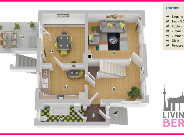 Sofern Sie mit einem Kind einziehen möchten, könnte das Esszimmer im Erdgeschoss auch zum Wohnzimmer umfunktioniert werden. Da es sich direkt an der Küche befindet, kann hier mit einigen Umbauarbeiten ein toller Bereich entstehen. Das derzeitige Wohnzimmer könnte dann Ihr neues Schlafzimmer werden. Im Obergeschoss kann sich Ihr Nachwuchs wohlfühlen: Das Durchgangszimmer war früher eine Küche, sodass die Anschlüsse noch vorhanden sind und theoretisch die Nutzung als Küche auch wieder möglich wäre. Zusammen mit dem eigenen Badezimmer und dem großen Hauptzimmer, kann hier durchaus auch ein kleines eigenes Reich entstehen.