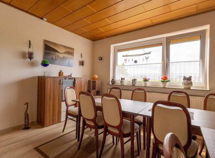 Das Haus eignet sich sowohl als großzügiges Einfamilienhaus als auch für die Aufteilung in zwei separate Wohneinheiten, was es besonders interessant für Familien oder als Mehrgenerationenhaus macht. Der gepflegte Garten lädt zum Verweilen ein und bietet Platz für Freizeit, Spiel und Erholung.