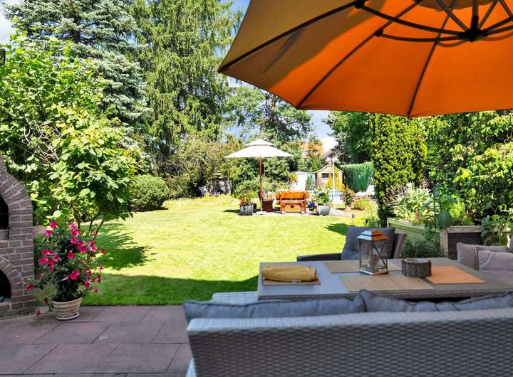 Besonders hervorzuheben ist der weitläufige und liebevoll angelegte Garten. Mit gepflegten Bepflanzungen, einem idyllischen Teich sowie einem großzügigen Pool entsteht hier eine ganz besondere Oase. Ob entspannte Abende auf der Terrasse, sommerliches Badevergnügen oder Momente der Ruhe am Wasser – das Außengelände erfüllt höchste Ansprüche an Erholung und Freizeitgestaltung. Ergänzt wird das Angebot durch eine Garage sowie mehreren Stellplätzen.