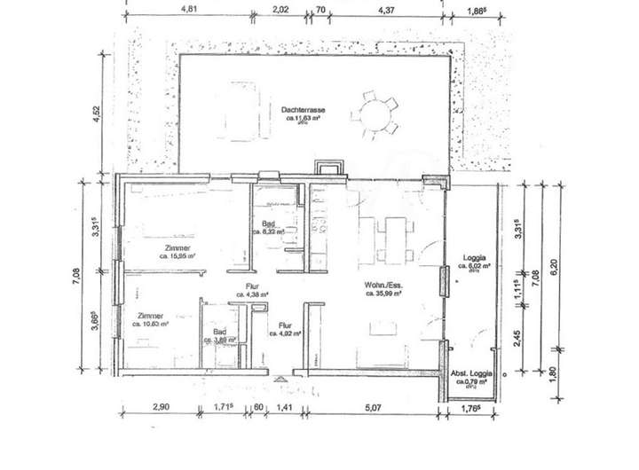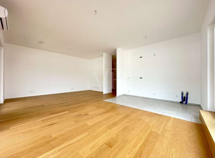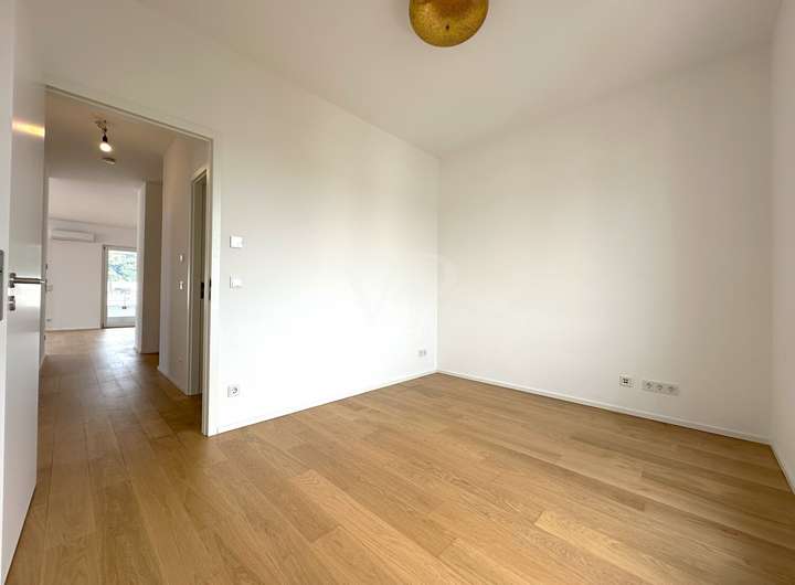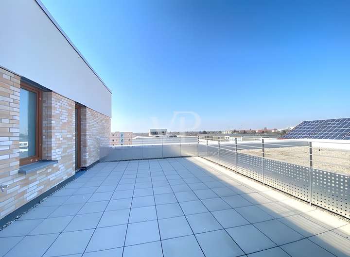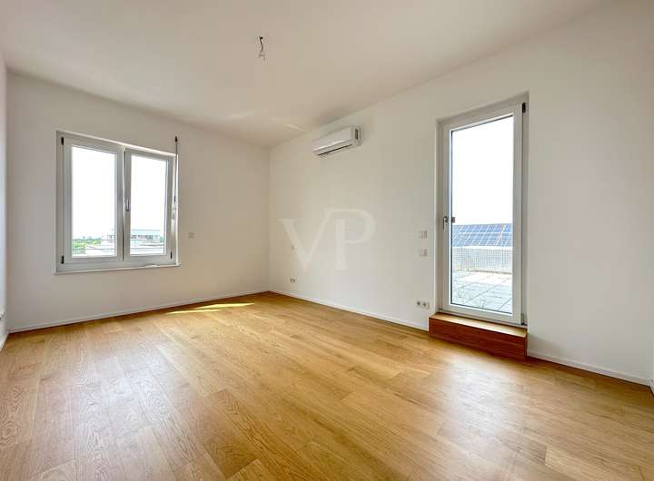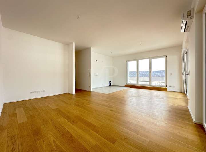 Auf ca. 101 m² moderner Wohnfläche befindet sich ein großer offener Wohn-/ Essbereich mit direktem Terrassen- und Loggiazugang, außerdem weitere zwei Zimmer, von denen eines einen zusätzlichen Terrassenzugang besitzt. Im Wohnbereich sowie im Schlafzimmer können Sie in der Sommerhitze die Raumtemperatur über Klimaanlagen komfortabel regulieren. Eine Küche ist nicht Bestandteil des Mietobjekts. Die Küchenausstattung erfolgt durch den Mieter auf eigene Kosten. Die zwei Bäder (1 Duschbad & 1 Vollbad) sowie eine Garderobenmöglichkeit direkt im Eingangsbereich der Wohnung komplettieren das großzügige Raumangebot.