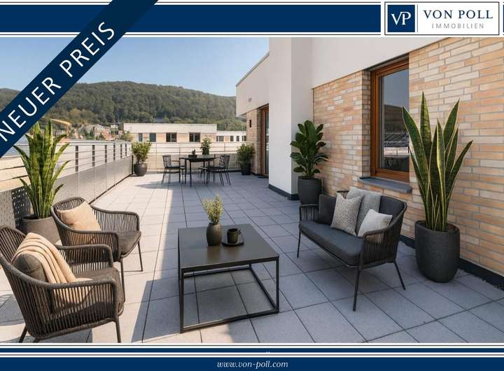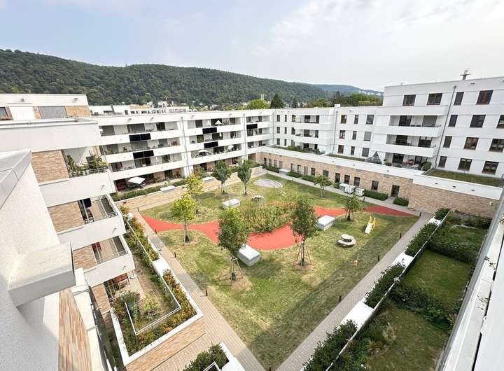 Von der ca. 50 m² großen Terrasse und zusätzlich einer über 12 m² großen Loggia aus genießen Sie einen zauberhaften Blick auf die grüne Umgebung Heidelbergs. Ein echtes Highlight!