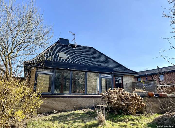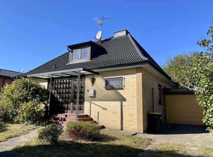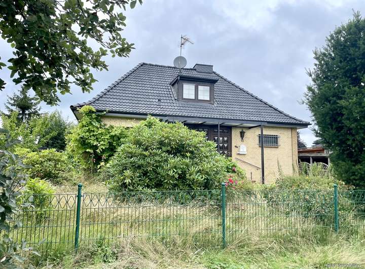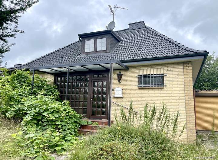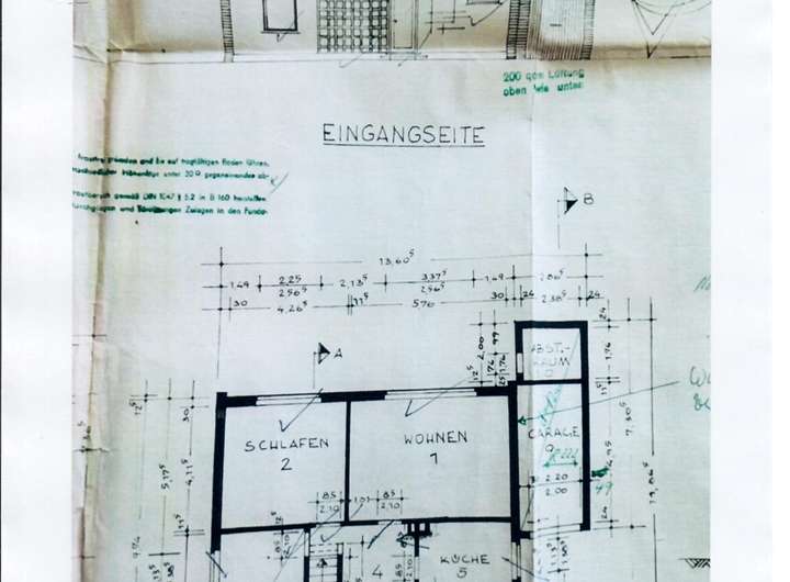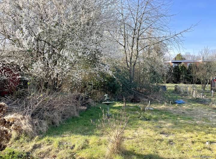 Das eine Grundstück ist derzeit mit einem Einfamilienaus mit Überdachung, einem Keller und einer Garage bebaut. Der großzügige Gartenbereich hat ein Gartenhaus und bietet viel Platz und Möglichkeiten. Das Haus wurde Mitte der 60er Jahre erbaut und ist sanierungsbedürftig. Das schön eingewachsene Grundstück ist im Zuwegungsbereich gepflastert und ansonsten als Gartenbereich angelegt.