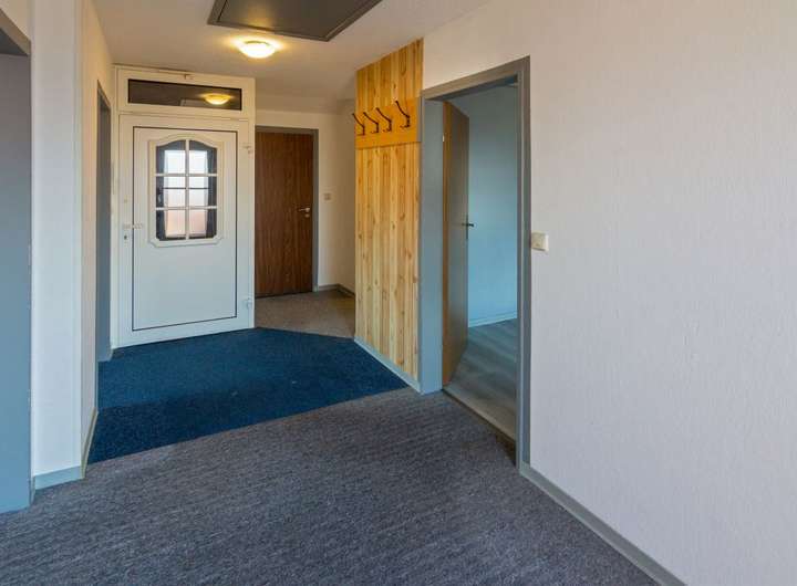 - einen Flur sowie den Zugang zu einer überdachten Terrasse mit Blick in den Garten.