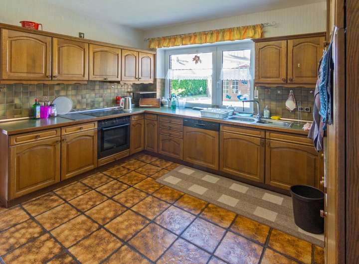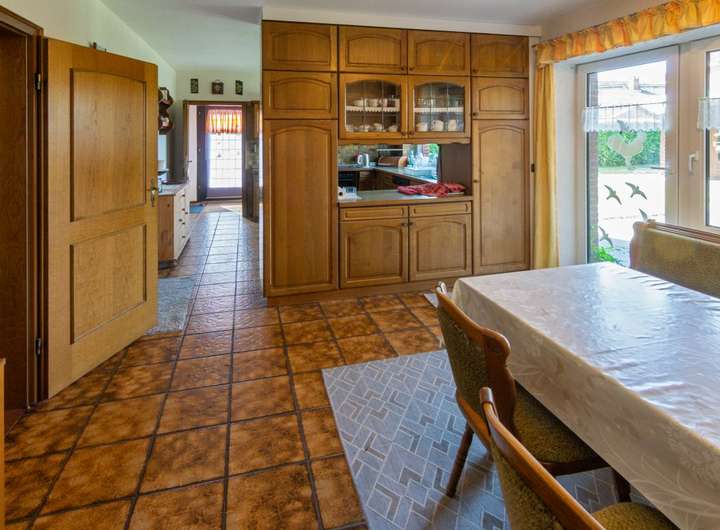 Bereits beim Betreten fällt die Großzügigkeit des Hauses ins Auge. Herzstück des Erdgeschosses ist die außergewöhnlich große Küche mit Raumtrenner sowie das lichtdurchflutete Wohnzimmer, das einen direkten Übergang in ein gemütliches Kaminzimmer ermöglicht. Hier befindet sich ein aufwendig installierter Kamin (Nutzbarkeit vorbehaltlich aktueller Bestimmungen).