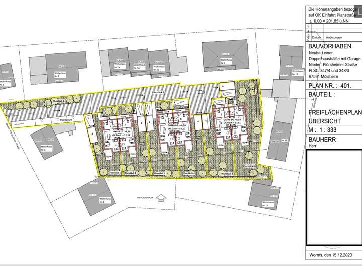 In schöner Lage von Mölsheim steht ein großes Baugrundstück zum Verkauf, das bereits geplant und genehmigt ist für den Bau von 3 Doppelhäusern (6 Wohneinheiten).