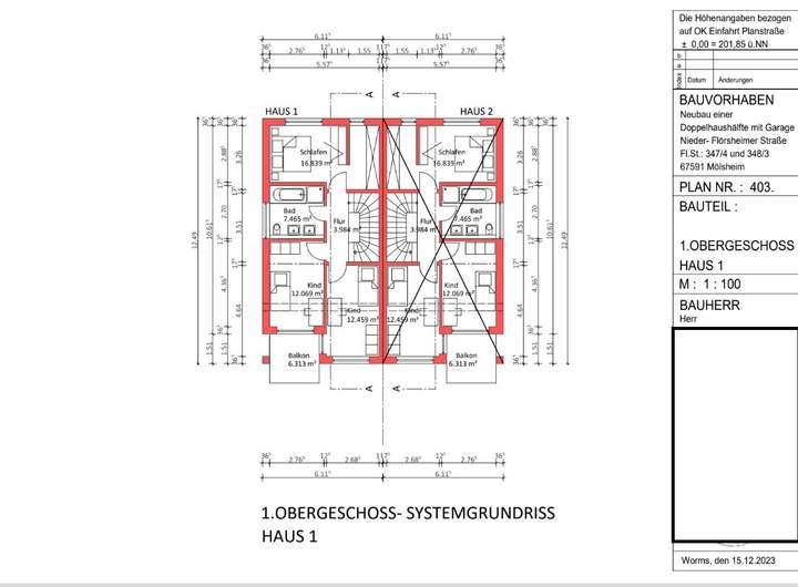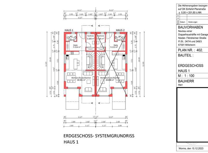 ✅ Bebauung: 3 x Doppelhaus nach genehmigten Bauplänen