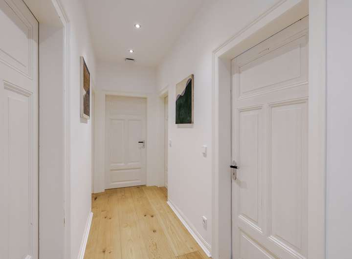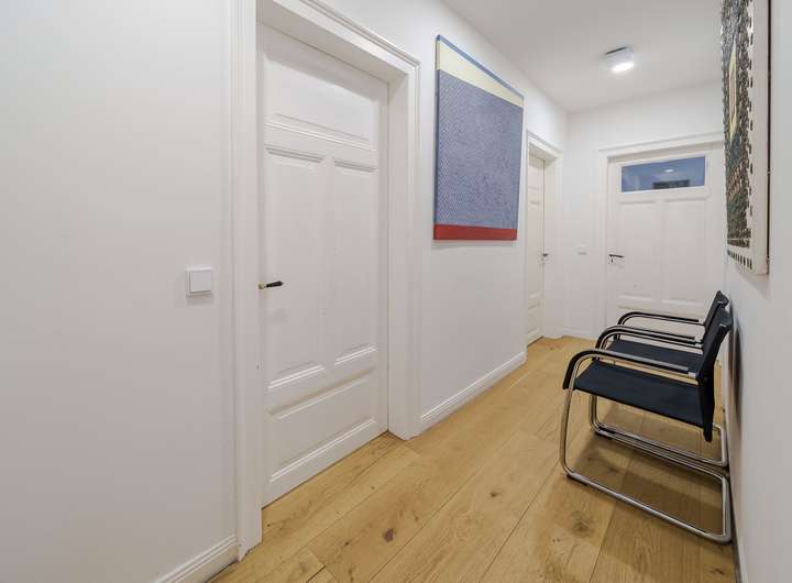 Die Innenräume wurden mit hochwertigem Echtholzparkett ausgestattet, das 2022 erst erneuert wurde. Alle Räume sowie die zwischenliegenden Flure erstrahlen in neuem Glanz und bieten ein behagliches Wohlfühlambiente. Die gut durchdachte Elektroverkabelung umfasst zahlreiche Steckdosen und Netzwerkanschlüsse sowie eine integrierte Deckenbeleuchtung, die den heutigen Ansprüchen an Komfort und Funktionalität entspricht.