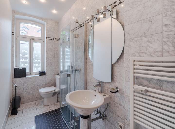 - top gepflegte Tageslichtbäder im Erdgeschoss (mit Dusche) sowie im Obergeschoss (mit Wanne und separater Dusche)