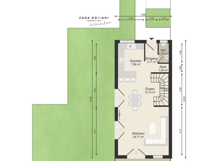 Auf den ersten Blick wirkt das Objekt wie ein "normales Reihenhaus", daher ist der zweite Blick umso interessanter, da hier die Raumaufteilung genial gelungen ist.