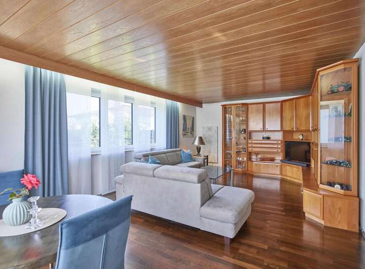 - Bodenbeläge aus Laminat, Fliesen, Parkett und Teppichboden sorgen für eine warme und einladende Atmosphäre.