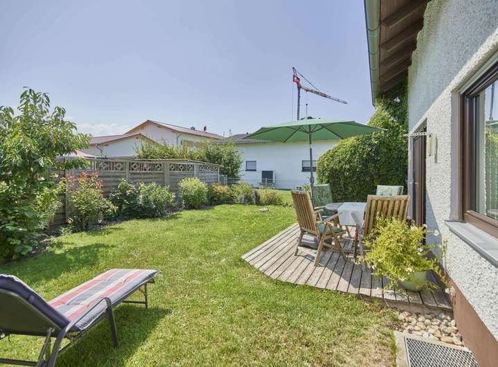 - Der Garten lädt zu entspannten Stunden im Freien ein und bietet Platz für Familienfeste oder einfach nur zur Erholung.
