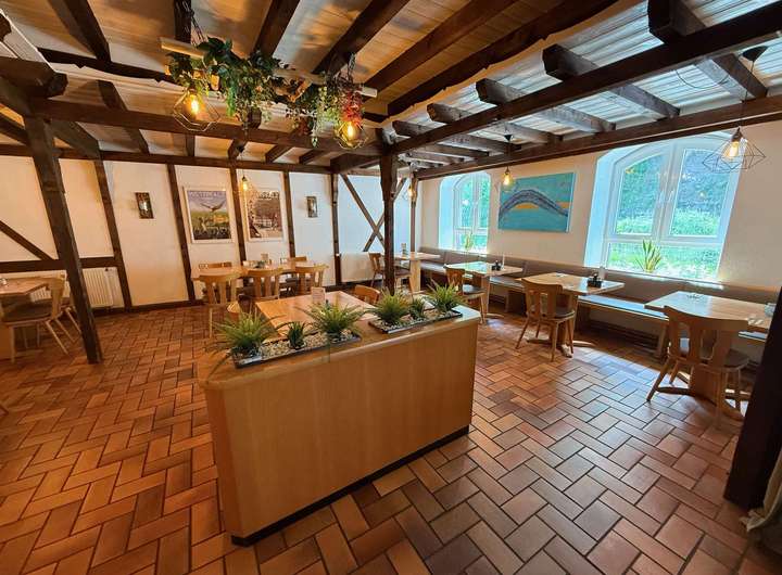 Insgesamt stehen etwa 680 qm Wohnfläche verteilt auf 7 Wohneinheiten zur Verfügung. Hinzu kommen ca. 260 qm Ausbaureserve im Dachgeschoss und ca. 50 qm Kellerfläche. Die Gaststätte hat etwa 150 qm Fläche und verfügt zusätzlich über einen Außensitz in herrlicher Lage. Zudem stehen ausreichend Parkplätze zur Verfügung. Aktuell werden monatlich Kaltmieten in Höhe von 3.724,- Euro erwirtschaftet, durch die Vermietung der Wohnung der Eigentümer kann dieser Betrag problemlos auf 4.324,- Euro Kaltmiete erhöht werden - ein unschlagbares Argument!