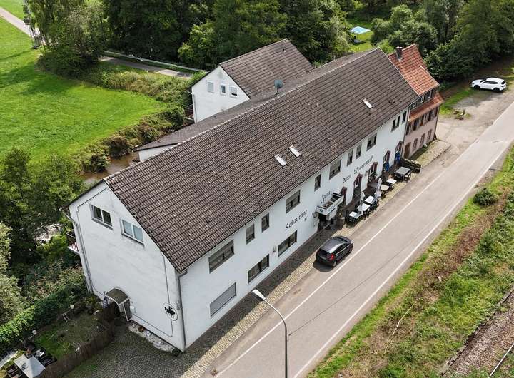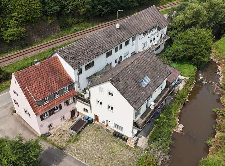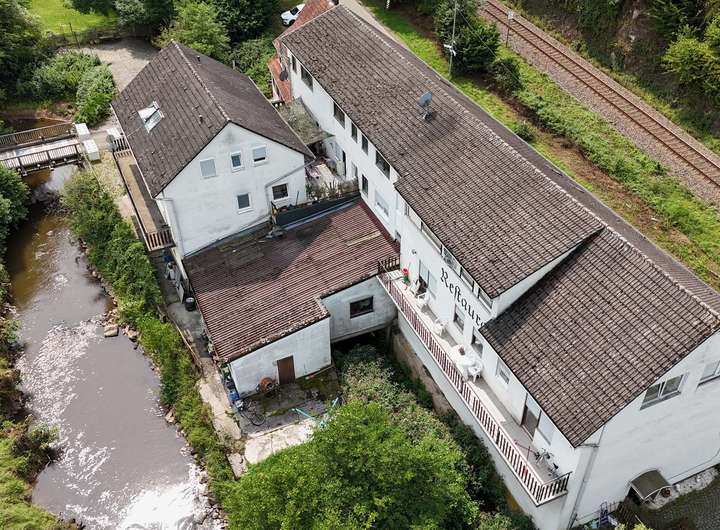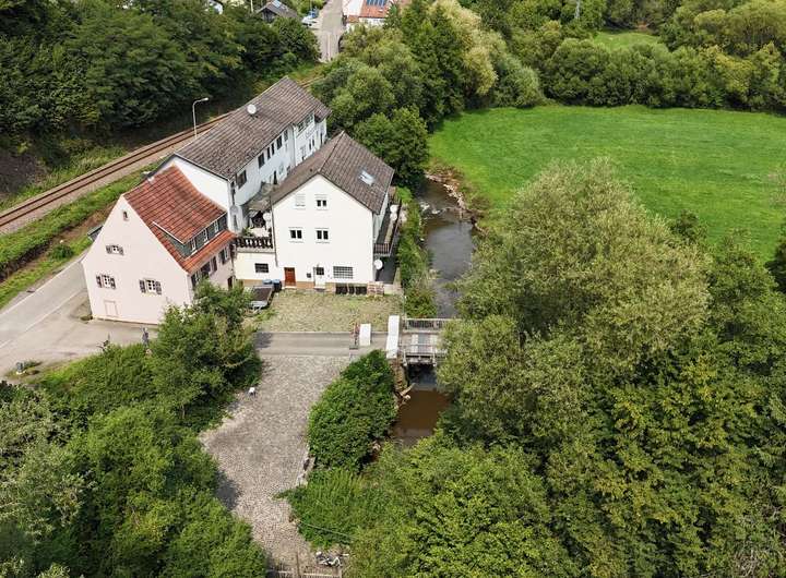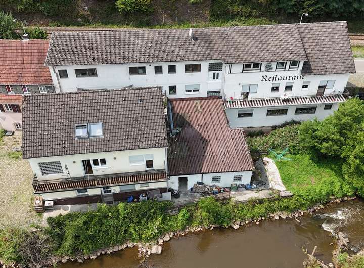 Bei diesem Objekt handelt es sich um ein historisches Mühlengebäude, das im Laufe der letzten 150 Jahre immer wieder erweitert und verändert wurde. Heute beherbergt das große Anwesen ein Mehrfamilienhaus mit gut besuchter Speisegaststätte.