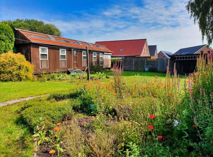 Die Wohnfläche von ca. 136 m² verteilt sich im Erdgeschoss auf den zentralen Flur, ein Schlafzimmer, die Küche mit Zugang zum großzügigen Wohn-/ Esszimmer, welches über einen Kaminofen verfügt. Weiterhin befindet sich im Erdgeschoss ein Tageslichtbad mit Dusche und der Flur mit Garten-/ Sommergartenzugang.