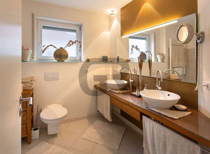 Im Souterrain finden Sie nicht nur einen klassischen Kellerbereich mit Wasserentkalkungsanlage, sondern auch ein ca. 20 m² großes, wohnlich nutzbares Zimmer und ein zusätzliches Badezimmer – ideal als Fitnessraum, Saunabereich, Gäste- oder Hobbyzimmer.