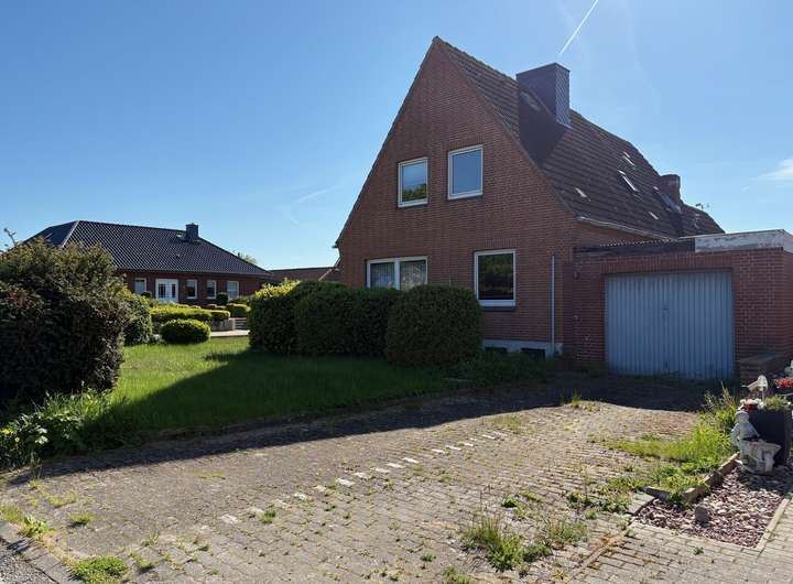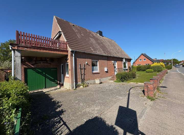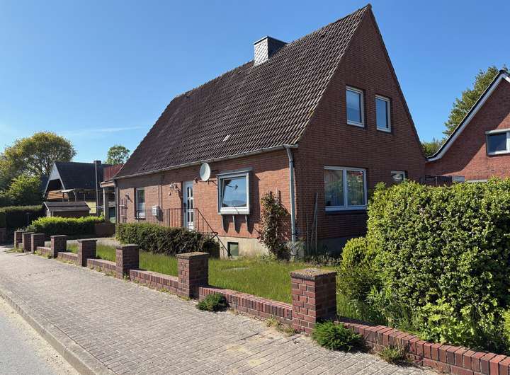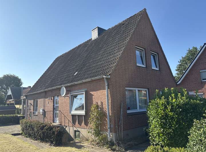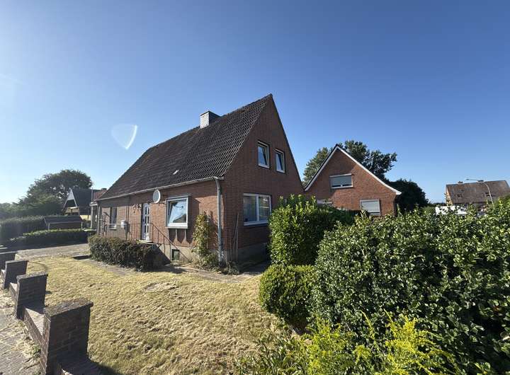 Auf dem großzügigen Eckgrundstück befindet sich ein Einfamilienhaus mit klassischer Rotklinkerfassade, das im Jahr 1965 errichtet und 1975 um einen Seitenanbau erweitert wurde.