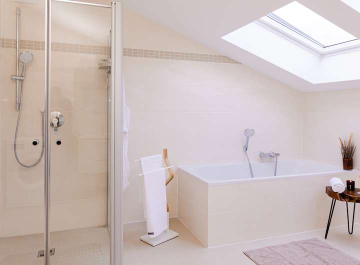 Ein sehr geräumiges Bad mit Wanne/sep. Dusche sowie ein sep. Gäste-WC bieten ebenfalls hohen Wohnkomfort!