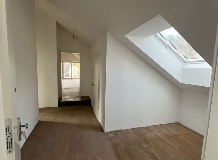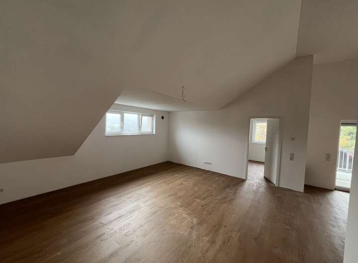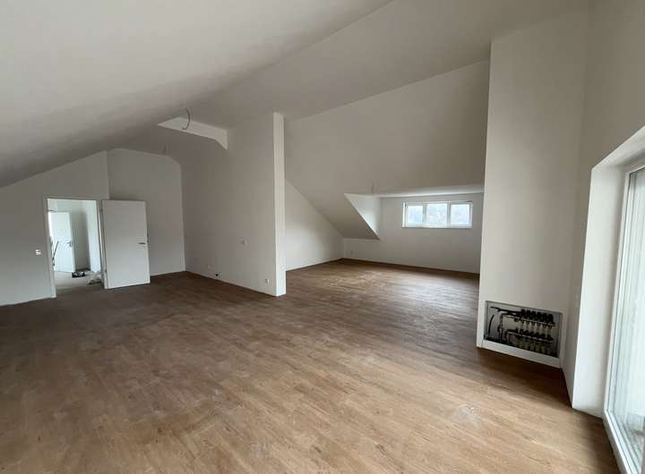 Exklusive Dachgeschoss-Wohnung für kleine Familien oder Paare in einem neugebauten Mehrfamilienhaus besticht durch seine besondere Lage mit dem weitreichenden Ausblick über das Leppe- und Aggertal. Der außergewöhnloche Schnitt und die hohen Decken heben den besonderen Charakter dieses Wohnung hervor.