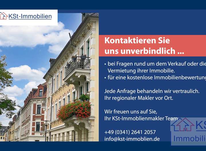 Durch Ihre Anfrage und die Nutzung der Dienstleistungen der KSt-Immobilien GmbH kommt ein Maklervertrag zustande. Kommt es durch unsere Tätigkeit zu einem wirksamen Hauptvertrag mit der Eigentümerseite, ist bei Abschluss eines notariellen Kaufvertrags eine Maklerprovision in Höhe von 7,14 % inkl. MwSt. des Kaufpreises an die KSt-Immobilien GmbH zu zahlen.