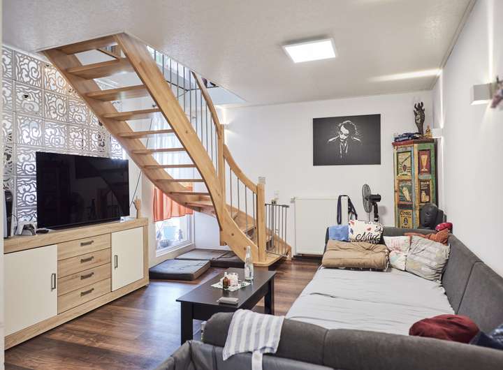 • Ober- & Dachgeschoss (ca. 111 m²): Eine stilvolle Wohnung mit offener Wohnküche, hellen Wohn- und Schlafräumen sowie zwei sonnigen Balkonen. Vermietet für 1.500€ kalt zzgl. 300€ NK.