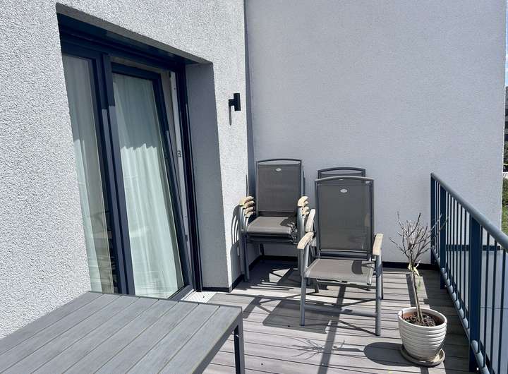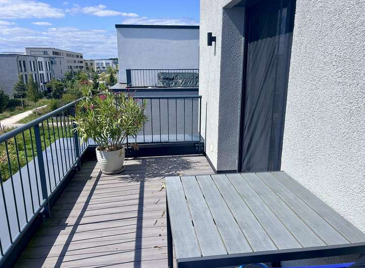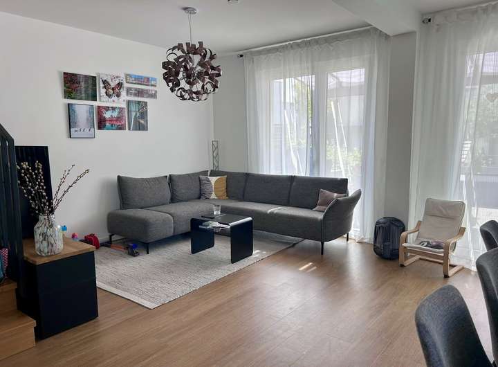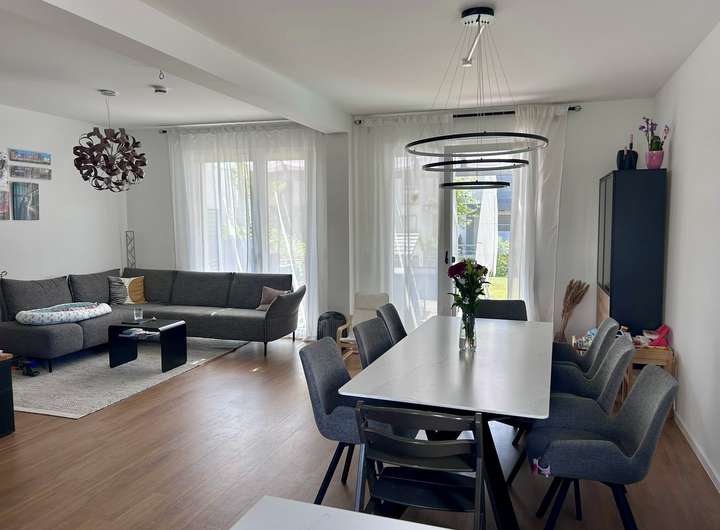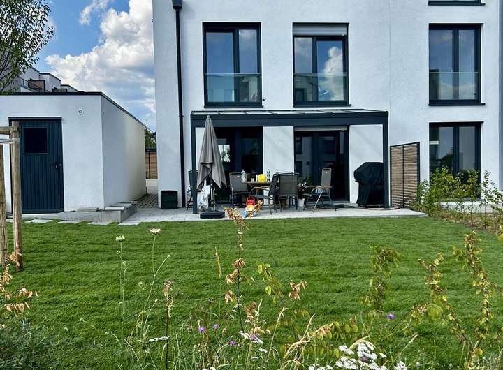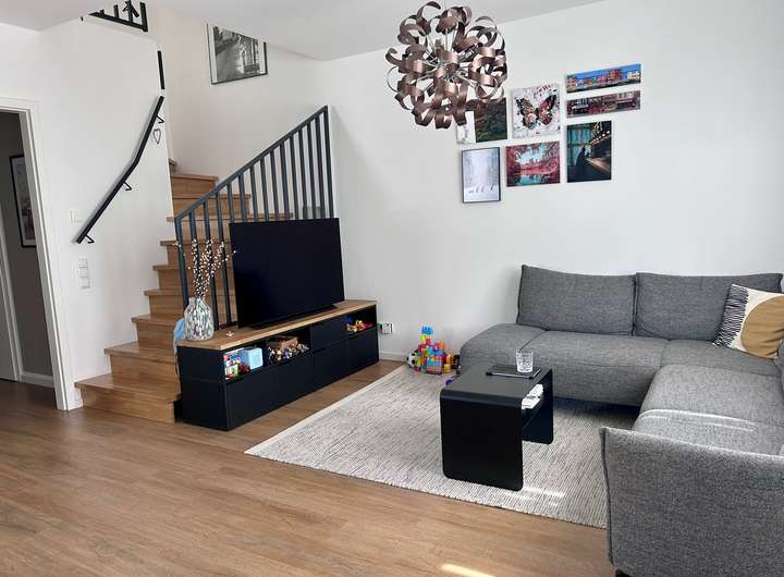 Diese hochwertige Doppelhaushälfte (Baujahr 2023, Erstbezug 06/2023) befindet sich im familienfreundlichen Neubaugebiet Hainpark. Mit moderner Architektur, durchdachten Grundrissen und perfekter Anbindung bietet sie ein Zuhause für höchste Ansprüche. Highlights: • 144 m² Wohnfläche auf 3 Ebenen • 5 Zimmer + Galerie im 2. OG (ideal als Büro) • Großzügiger Wohnbereich (6,30 m Breite) mit offener Küche • Dachterrasse als „Outdoor-Wohnzimmer“ • Südwest-Garten mit 2 Terrassen (24 m², teils überdacht + 9 m² mit verstellbarer Pergola) • Bodentiefe Fenster, Raumhöhe 2,65 m, Türen 2,11 m • Hochwertige Einbauküche (2023, Neupreis: 34.000€, Übernahme verpflichtend zum Kaufpreis von 25.000€) • Fußbodenheizung, Photovoltaik mit Speicher, KfW-55, Effizienzklasse A • Garage mit Abstellraum + zusätzlicher Stellplatz • Real geteiltes Grundstück (262 m²) mit großem Garten (~ 100 m²) • Noch knapp 3 Jahre Gewährleistung beim Bauträger This high-quality semi-detached house (built in 2023, first occupancy 06/2023) is located in the family-friendly new residential area Hainpark. With modern architecture, well-designed floor plans, and excellent transport connections, it offers a home for the highest demands. Highlights: • 144 m² living space on 3 levels • 5 rooms + gallery on the 2nd floor (ideal as a home office) • Spacious living area (6.30 m wide) with open-plan kitchen • Rooftop terrace as an “outdoor living room” • Southwest-facing garden with 2 terraces (24 m² partly covered + 9 m² with adjustable pergola) • Floor-to-ceiling windows, room height 2.65 m, interior doors 2.11 m • High-quality fitted kitchen (installed in 2023, original price €34,000 – mandatory takeover at €25,000) • Underfloor heating, photovoltaic system with battery storage, KfW-55 standard, energy efficiency class A • Garage with storage room + additional parking space • Individually owned plot (262 m²) with a large garden (~100 m²) • Almost 3 years of warranty from the Developer