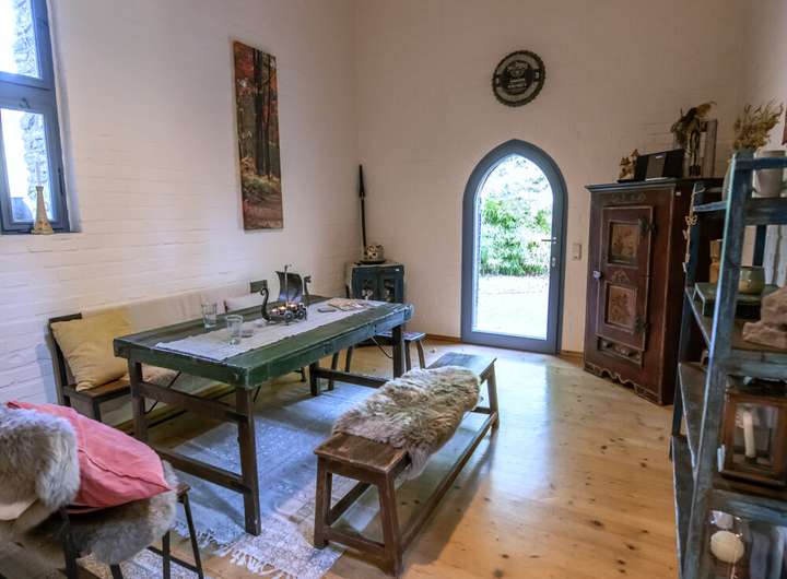 Der Innenraum vereint industriellen Charme mit moderner Wohnkultur. Originales Sichtmauerwerk setzt historische Akzente und kontrastiert mit hellen, lichtdurchfluteten Wohnbereichen. Großformatige Fensterflächen holen die Natur entlang der Alsenz ins Haus und schaffen ein unverwechselbares Raumgefühl – weit, offen und dennoch behaglich.