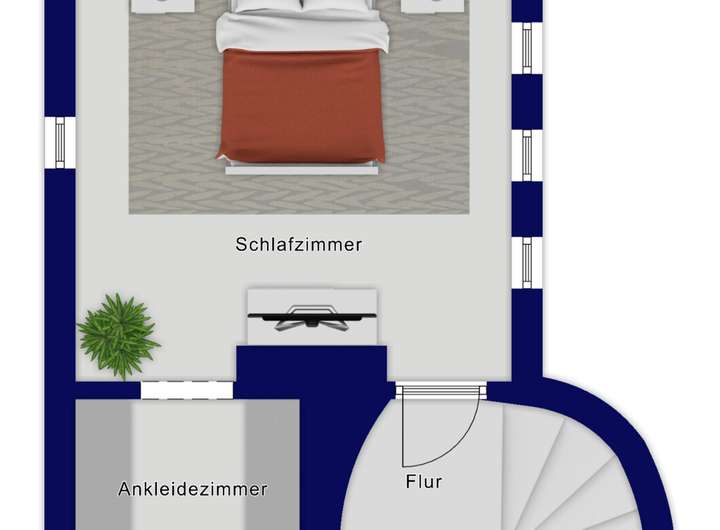 Galeriegeschoss mit Schlafbereich und begehbarem Kleiderschrank