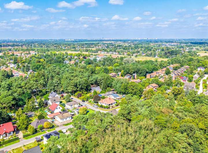 Die Umgebung verbindet ruhiges Wohnen im Grünen mit einer sehr guten Infrastruktur: Einkaufsmöglichkeiten, Schulen, Kitas sowie ärztliche Versorgung befinden sich in kurzer Entfernung. Dank der fußläufig erreichbaren S- und Regionalbahn sowie der Nähe zur B96 und A10 gelangen Sie schnell ins Berliner Stadtzentrum oder in die umliegende Region.