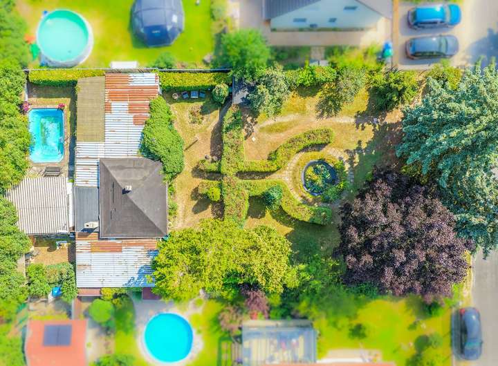 Der Bestand umfasst ein älteres Wohngebäude sowie ein kleines Nebengebäude, die nach Bedarf erhalten, saniert oder zurückgebaut werden können. Das ursprüngliche Gebäude stammt aus den 1930er Jahren und wurde im Laufe der Jahrzehnte durch verschiedene Anbauten erweitert. Direkt hinter dem Grundstück beginnt ein kleiner Wald, der zu spontanen Spaziergängen einlädt oder einfach einen erholsamen Ausblick ins Grüne bietet. Der gewachsene Garten mit Baumbestand sorgt für Privatsphäre und eine natürliche Atmosphäre – ein idealer Ort für Familien und Naturliebhaber.