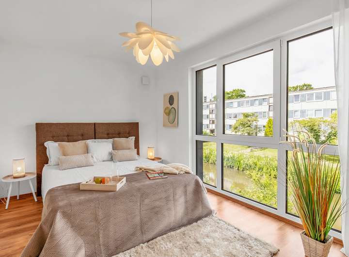Die hochwertig ausgestattete Immobilie, bietet Ihnen ein großzügiges, helles Wohnzimmer mit Wasserblick, eine neue, moderne Einbauküche mit allen technischen Geräten des täglichen Bedarfs, Gäste WC, Tageslicht - Vollbad, Tageslicht - Duschbad und 3 Schlafzimmer bzw. Arbeitszimmer.