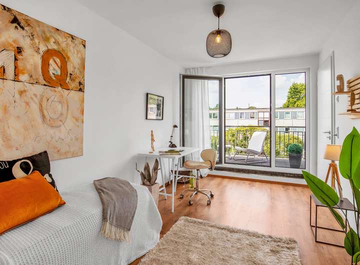 Eines der Highlights ist das Schlaf-/Arbeitszimmer im Staffelgeschoss, hier erwartet Sie ein separates Duschbad und eine große Dachterrasse.