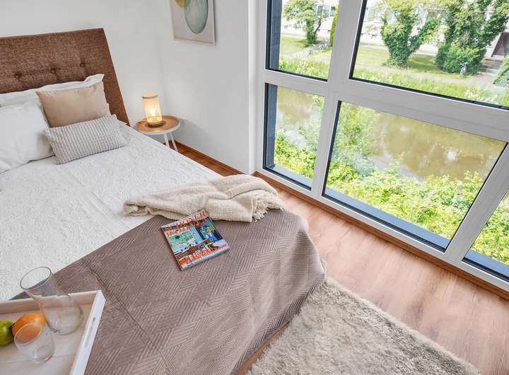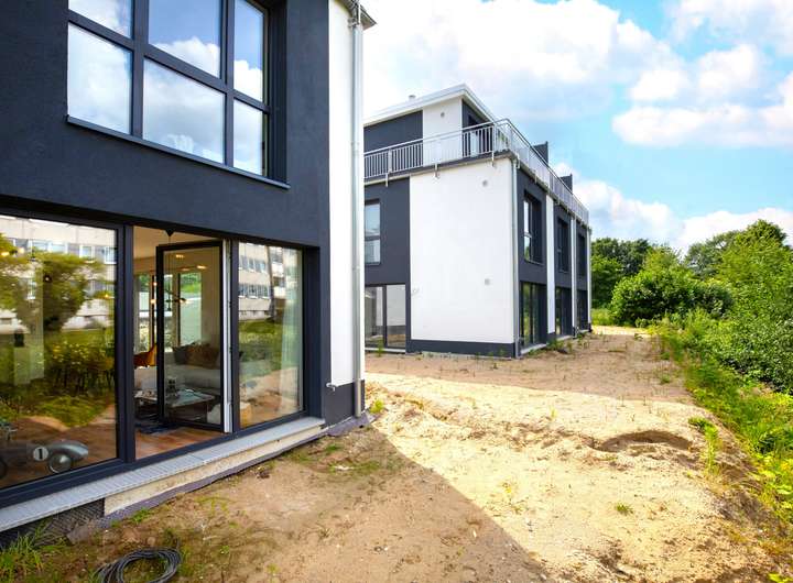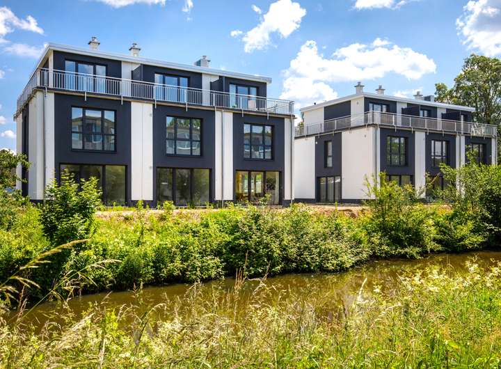 Dieses neue und moderne Stadthaus mit direktem Wasserblick und Energieklasse A+ bietet vielfältige Nutzungsmöglichkeiten, ideal geeignet für Familien und Paare.