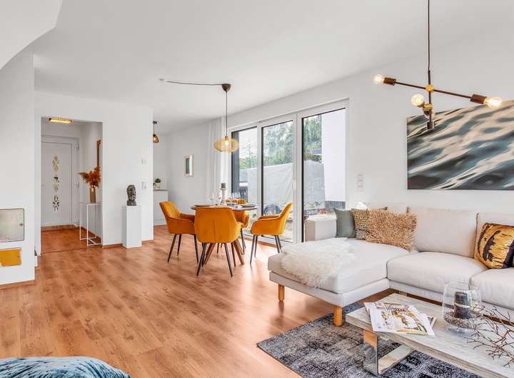 Die großzügige Raumaufteilung, die hellen Räume, mit Terrasse, Balkon und Dachterrasse laden zu Verweilen ein.