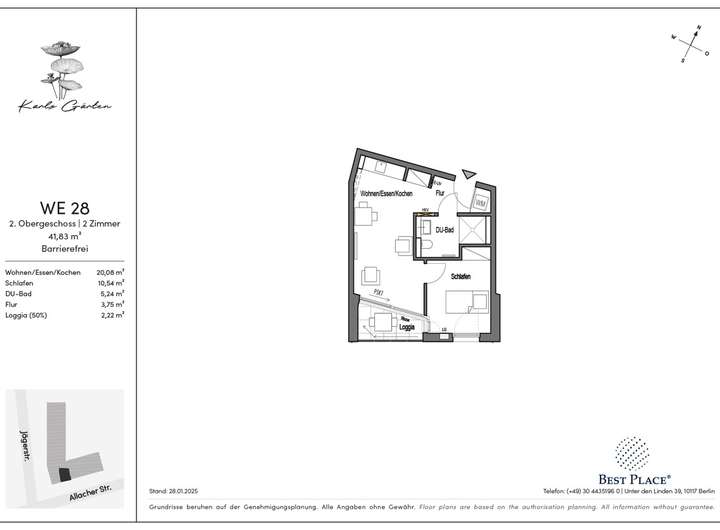 Diese elegante 2-Zimmer-Wohnung im Neubau „Karls Gärten“ vereint nachhaltiges Wohnen mit modernem Komfort auf ca. 42 m². Der offene Wohn-, Koch- und Essbereich mit direktem Zugang zur Loggia schafft eine einladende Atmosphäre. Das großzügige Schlafzimmer bietet ebenfalls Zugang zur Loggia und sorgt für eine perfekte Verbindung von Innen- und Außenbereich.
